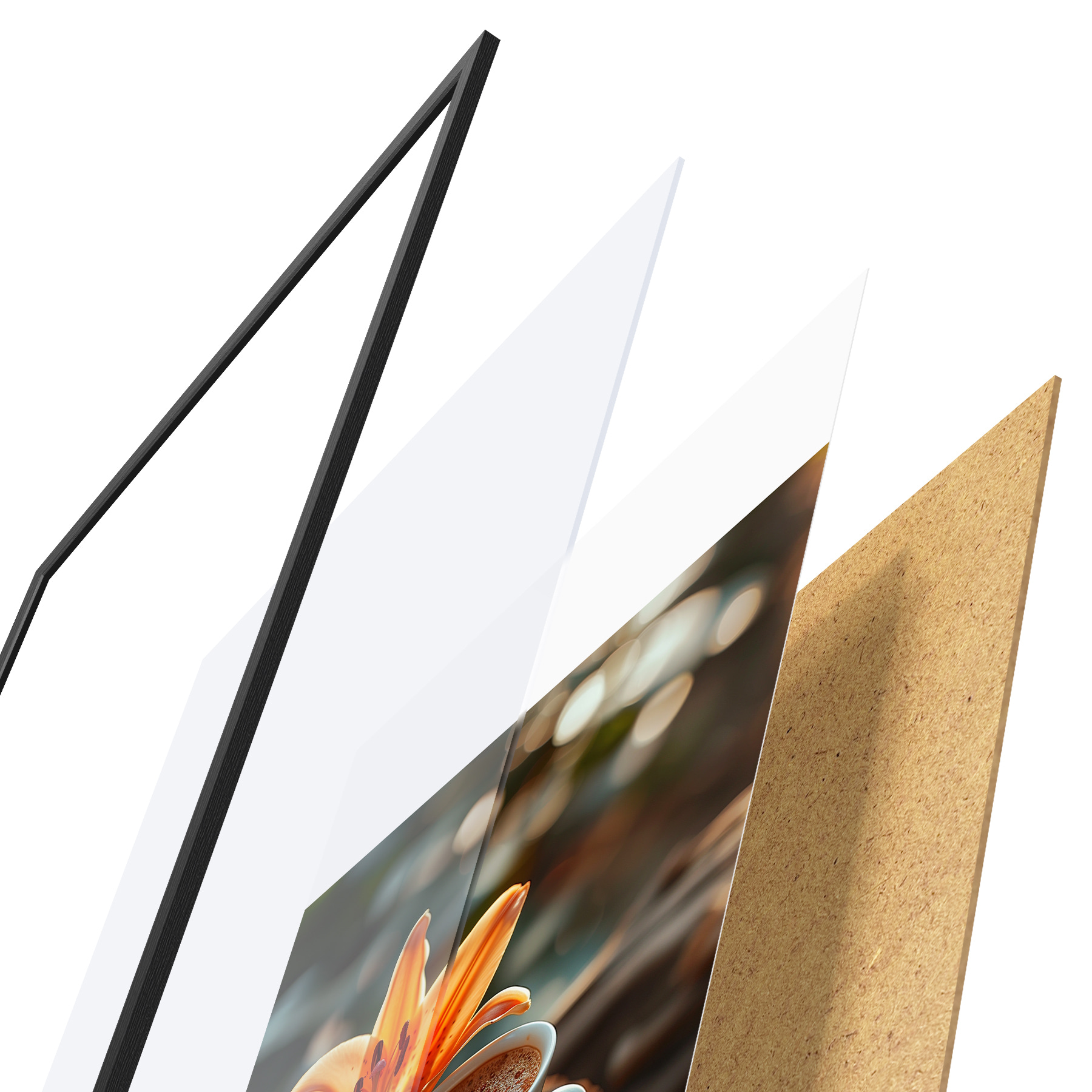 Plakatą sudaro rėmas, pleksiklas, atspausdintas vaizdas ir medžio drožlių plokštės pagrindas. Plakatą galima iš karto pakabinti ant sienos dėl kitoje pusėje esančių laikiklių.