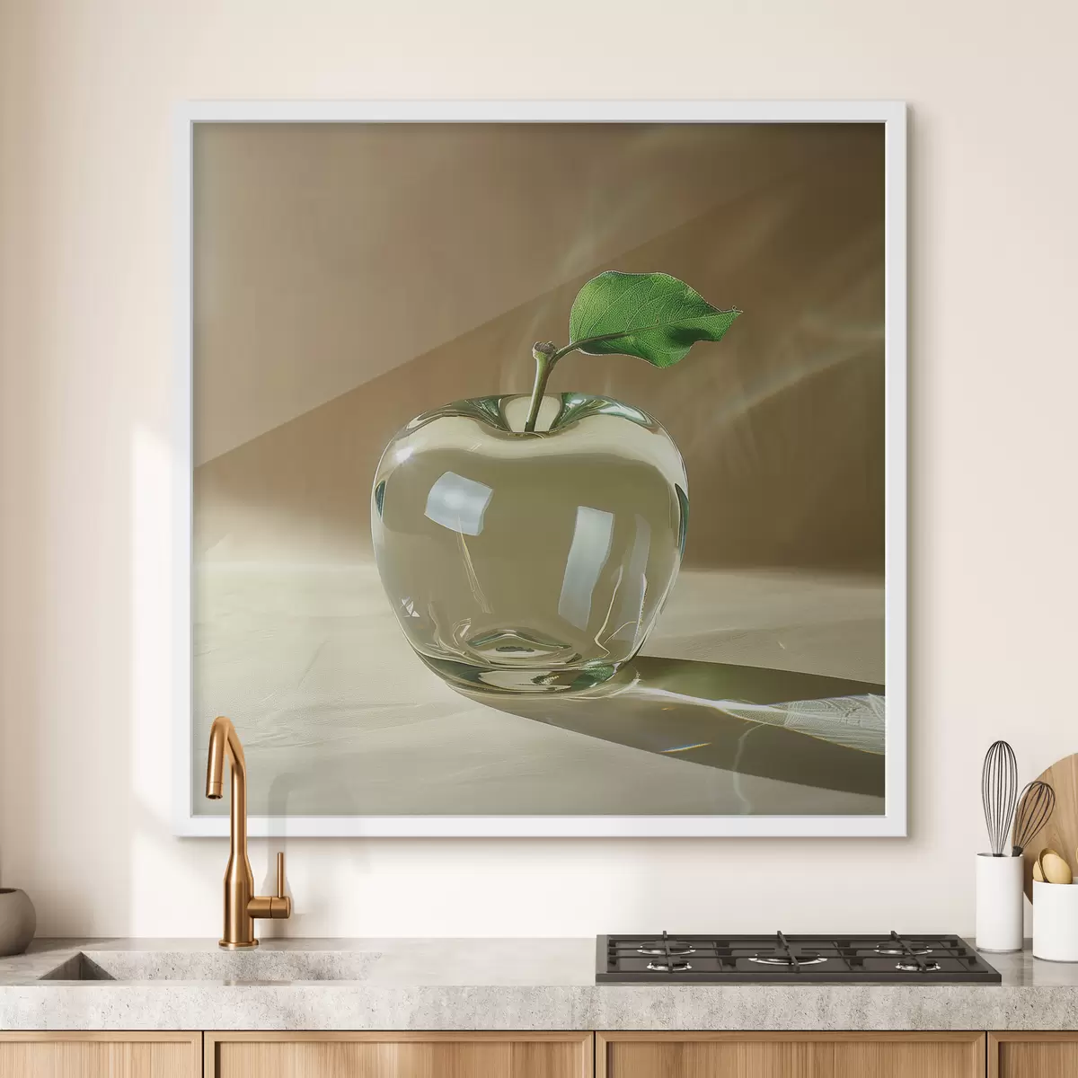 Plakatas Skaidrus stiklinis obuolys šviesiame fone f40913