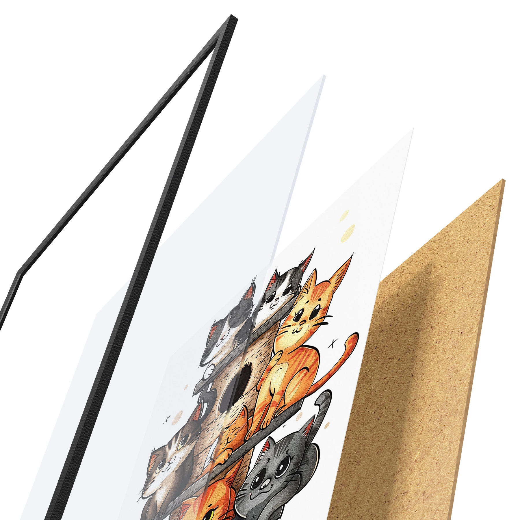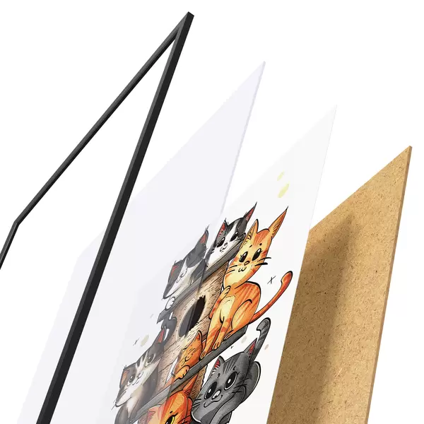 Plakatą sudaro rėmas, pleksiklas, atspausdintas vaizdas ir medžio drožlių plokštės pagrindas. Plakatą galima iš karto pakabinti ant sienos dėl kitoje pusėje esančių laikiklių.