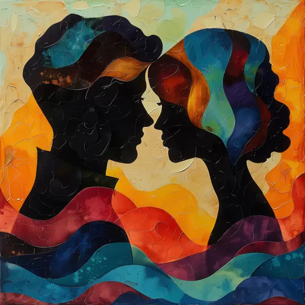Plakatas Akvareliniai įsimylėjusios poros siluetai f40938