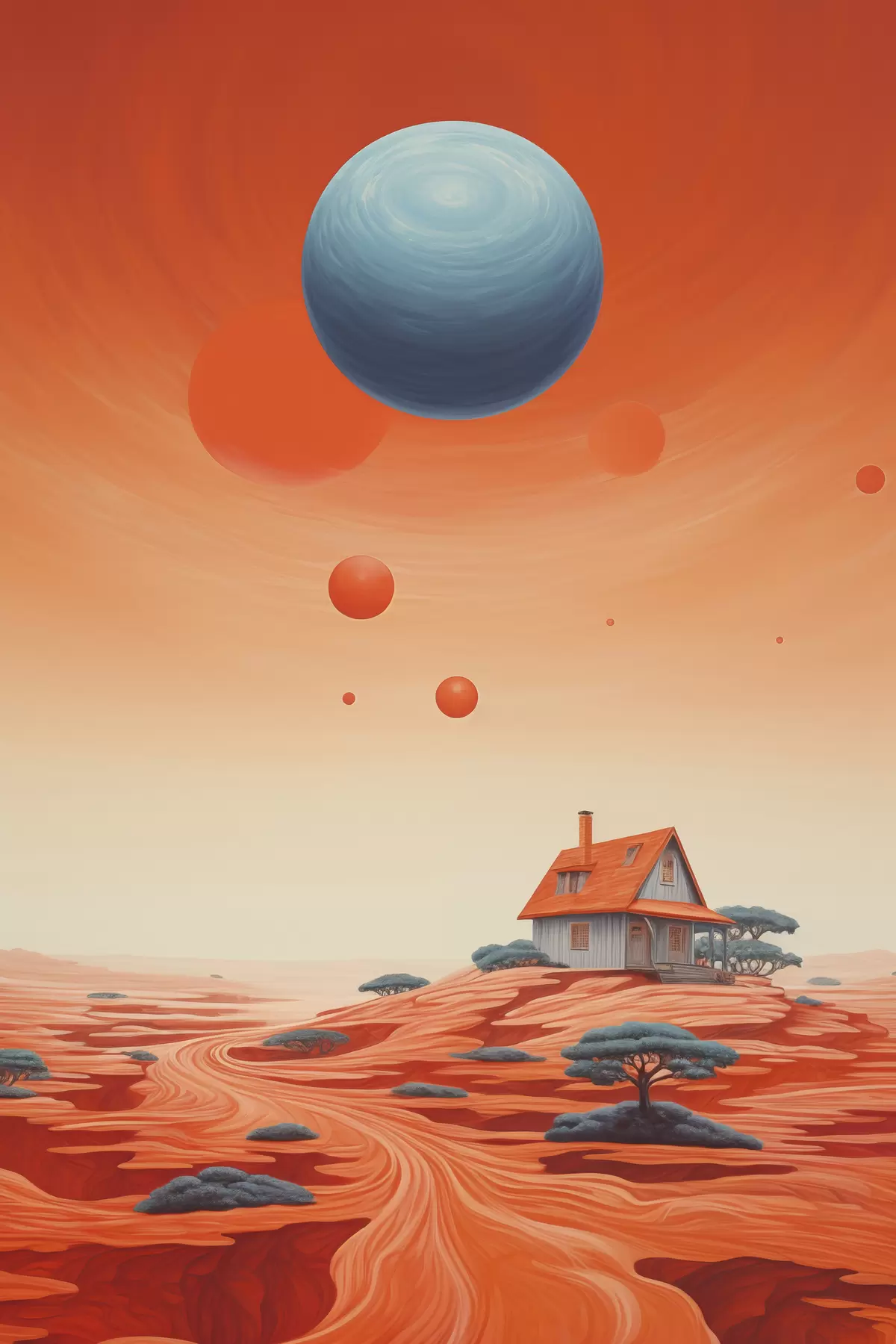 Plakatas Dykuma su namas, futuristinis menas, kosminis, planeta Ne f40944