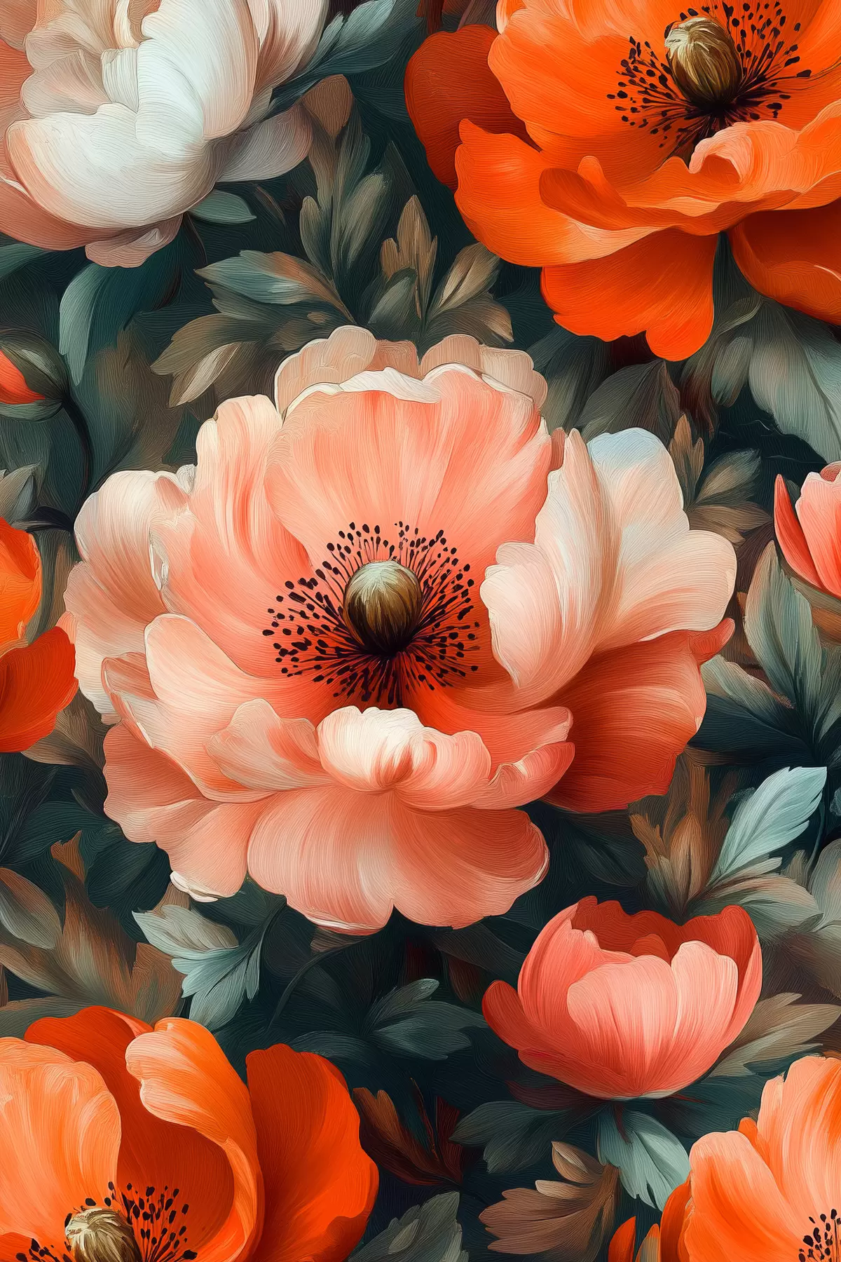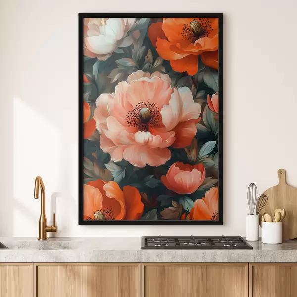 Plakatas Dideli raudoni bijūnai subtiliais aliejinio teptuko potėpiais Ne f40964