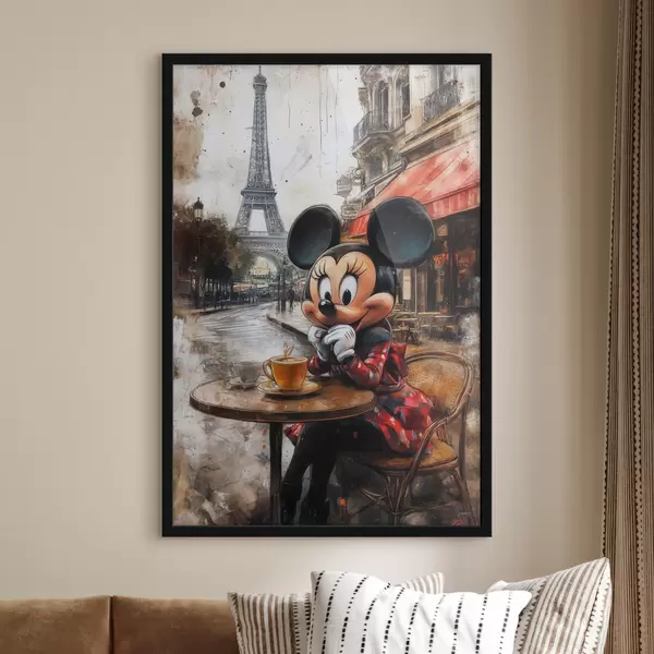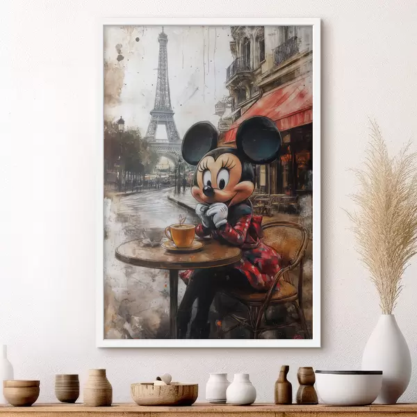 Plakatas Peliukas Mikis geria kavą prie Eifelio bokšto Paryžiuje Ne f40972