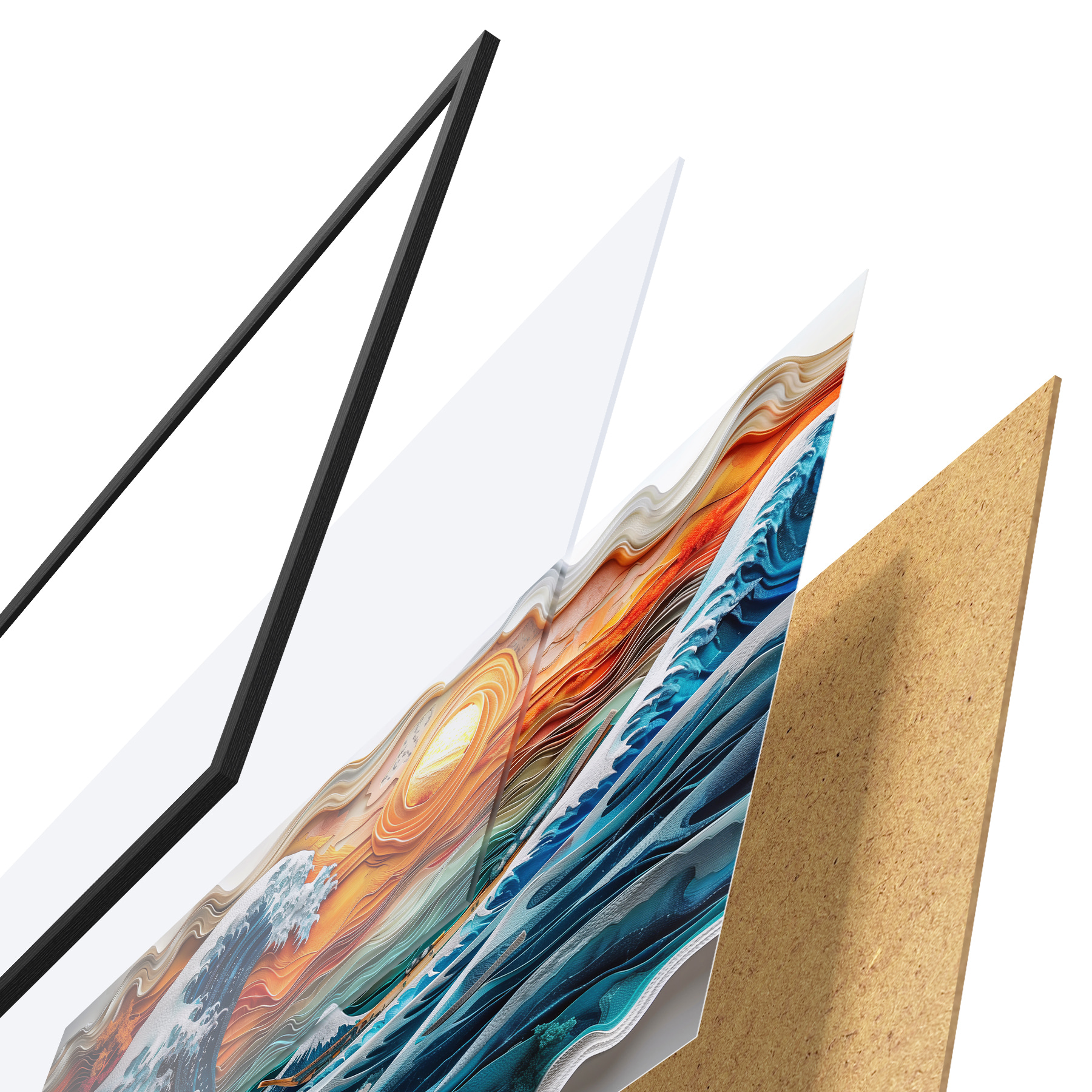 Plakatą sudaro rėmas, pleksiklas, atspausdintas vaizdas ir medžio drožlių plokštės pagrindas. Plakatą galima iš karto pakabinti ant sienos dėl kitoje pusėje esančių laikiklių.