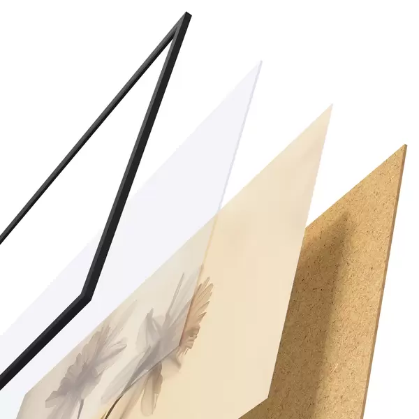 Plakatą sudaro rėmas, pleksiklas, atspausdintas vaizdas ir medžio drožlių plokštės pagrindas. Plakatą galima iš karto pakabinti ant sienos dėl kitoje pusėje esančių laikiklių.