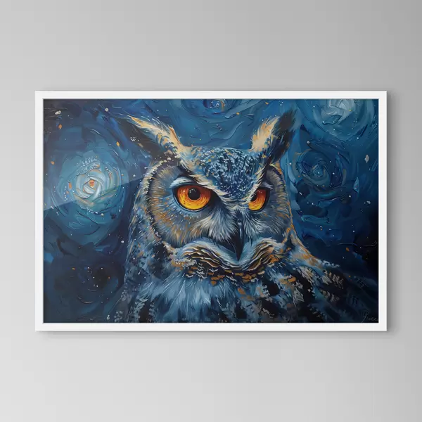 Plakatas Pelėdos žvilgsnis naktį su Van Gogo stiliaus dangumi Ne f40982
