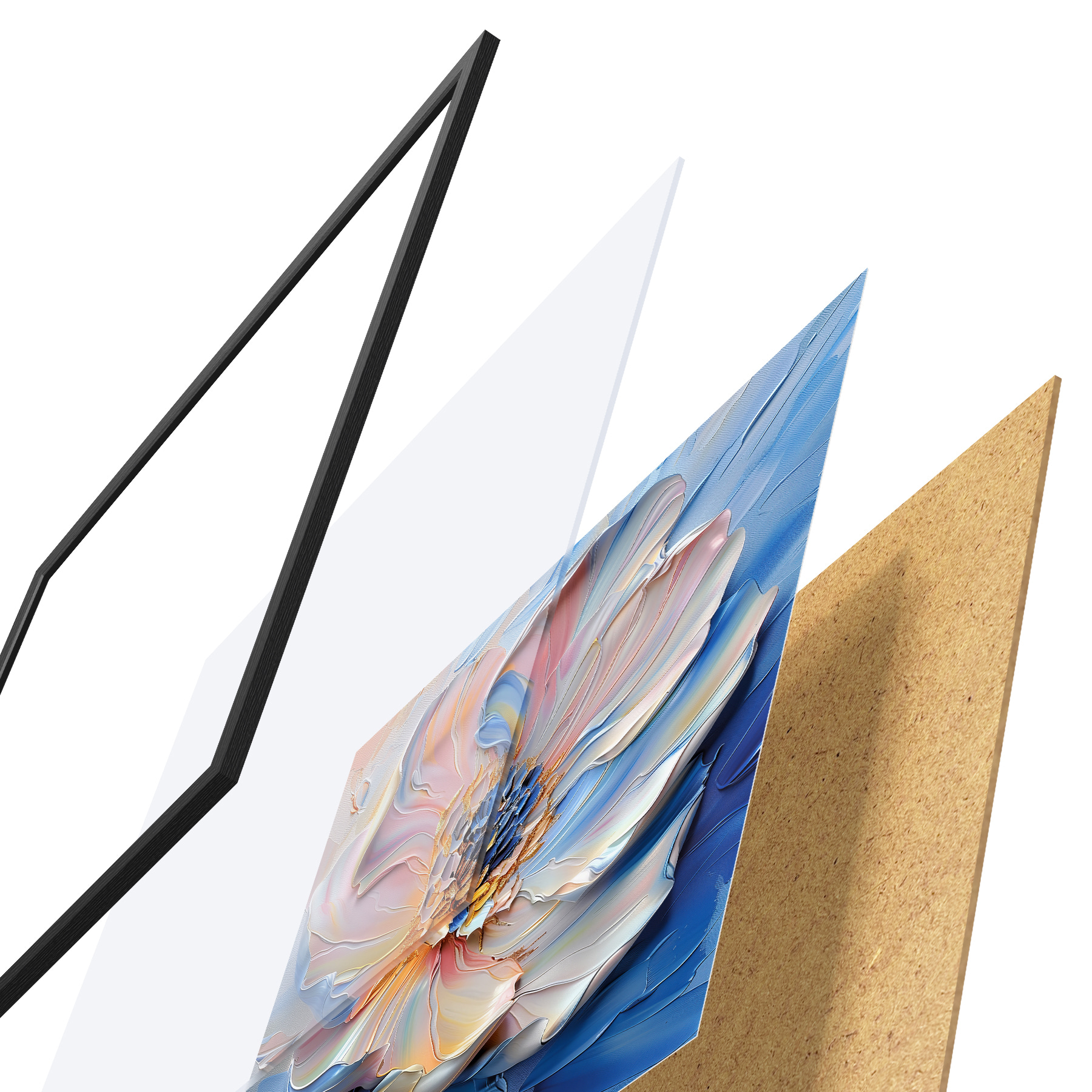 Plakatą sudaro rėmas, pleksiklas, atspausdintas vaizdas ir medžio drožlių plokštės pagrindas. Plakatą galima iš karto pakabinti ant sienos dėl kitoje pusėje esančių laikiklių.