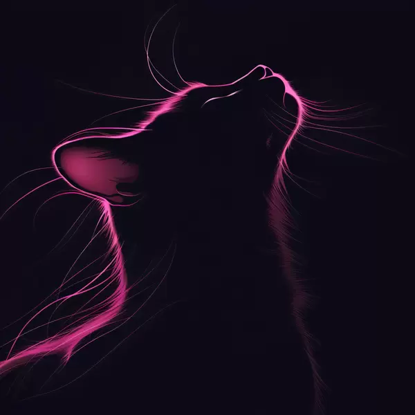 Plakatas Rožinis neoninis katės siluetas juodame fone f40994