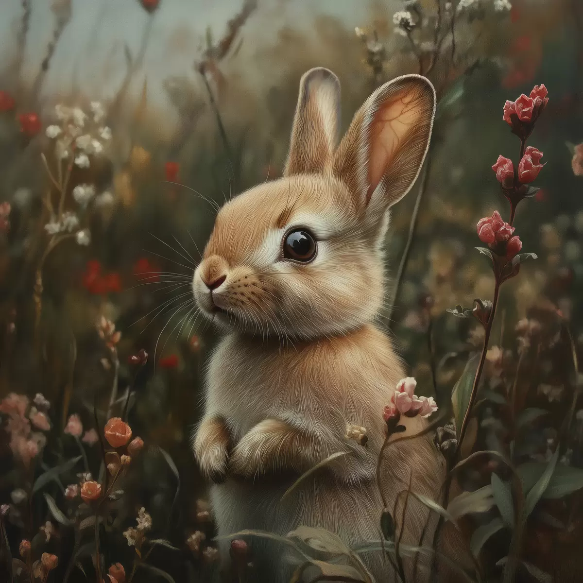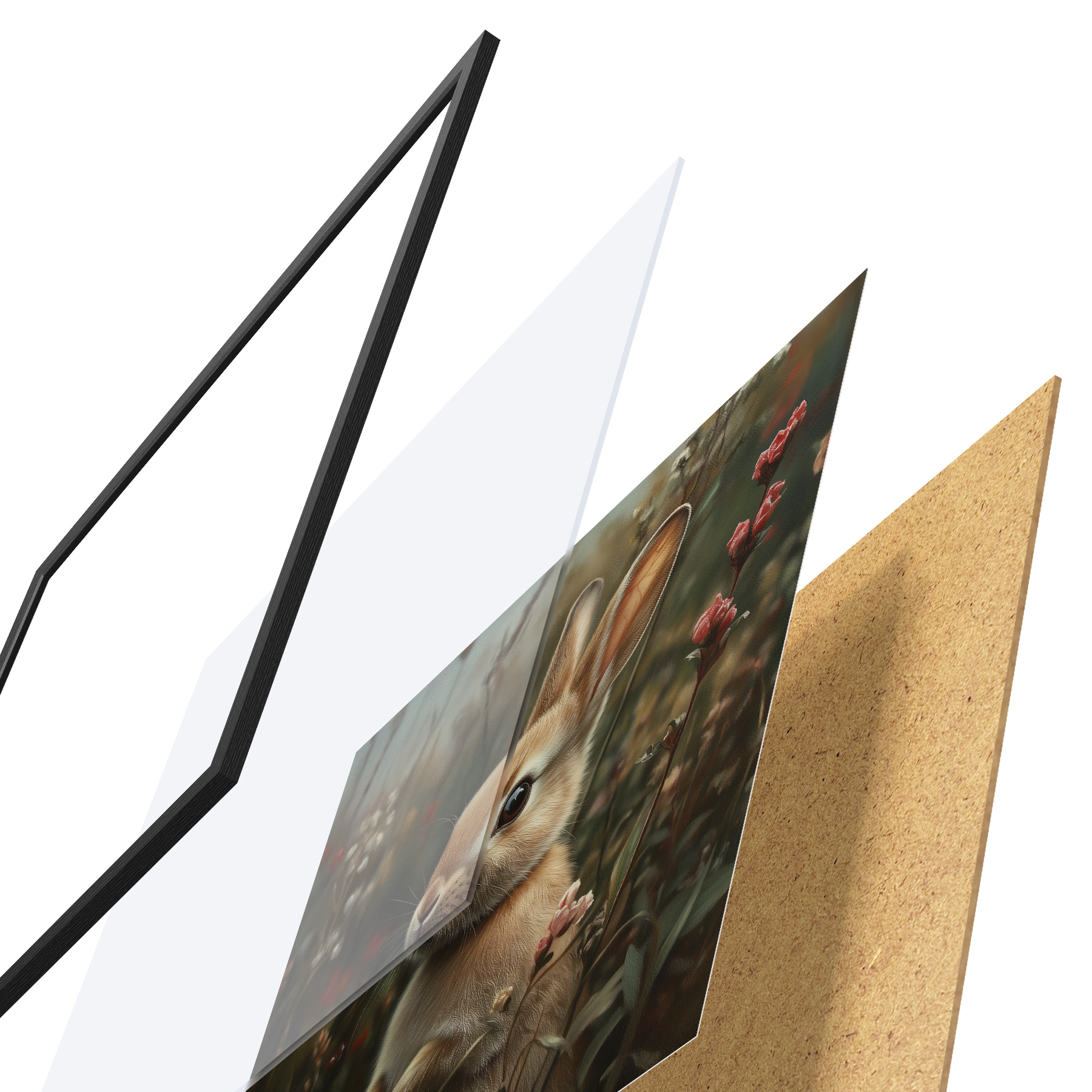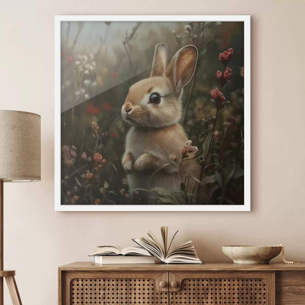 Plakatas Mielas zuikutis pastelinių atspalvių lauko gėlėse f40998