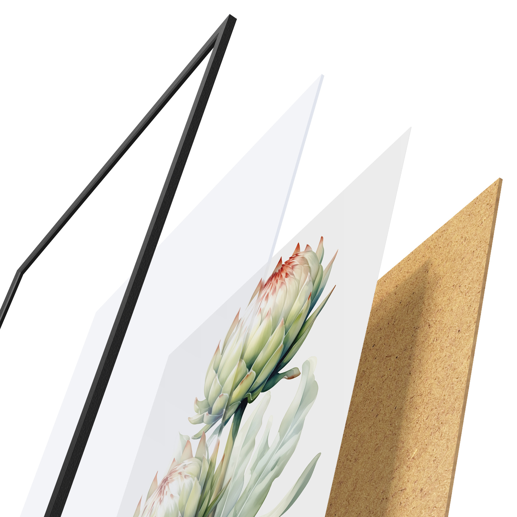 Plakatą sudaro rėmas, pleksiklas, atspausdintas vaizdas ir medžio drožlių plokštės pagrindas. Plakatą galima iš karto pakabinti ant sienos dėl kitoje pusėje esančių laikiklių.