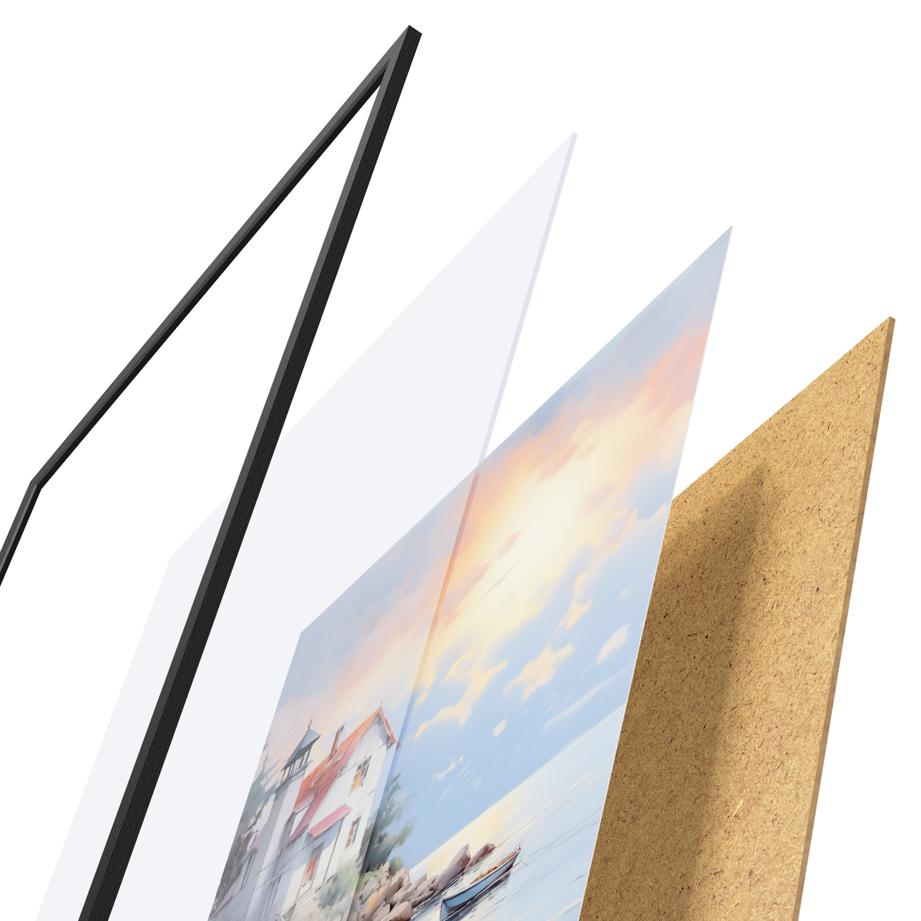 Plakatą sudaro rėmas, pleksiklas, atspausdintas vaizdas ir medžio drožlių plokštės pagrindas. Plakatą galima iš karto pakabinti ant sienos dėl kitoje pusėje esančių laikiklių.