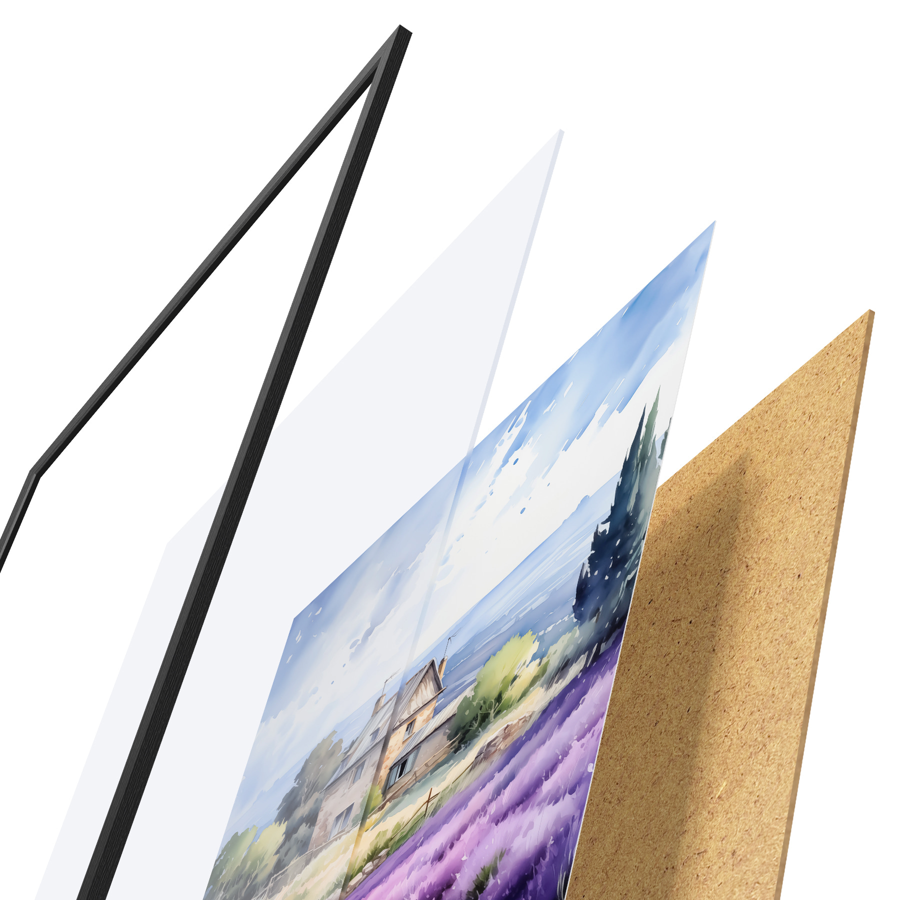 Plakatą sudaro rėmas, pleksiklas, atspausdintas vaizdas ir medžio drožlių plokštės pagrindas. Plakatą galima iš karto pakabinti ant sienos dėl kitoje pusėje esančių laikiklių.