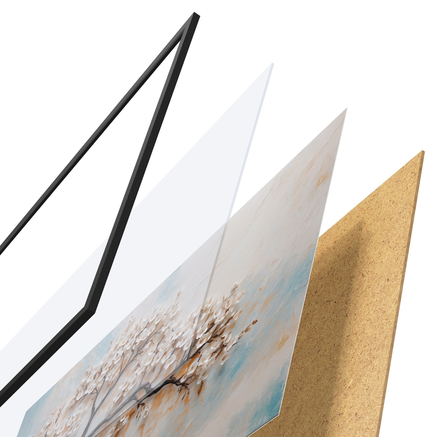 Plakatą sudaro rėmas, pleksiklas, atspausdintas vaizdas ir medžio drožlių plokštės pagrindas. Plakatą galima iš karto pakabinti ant sienos dėl kitoje pusėje esančių laikiklių.