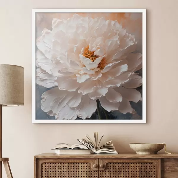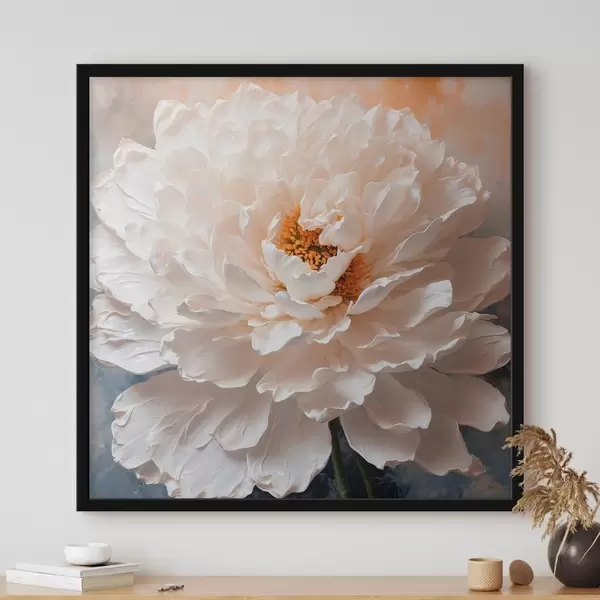 Plakatas Balta gėlė oranžiniame-mėlyname fone f41038