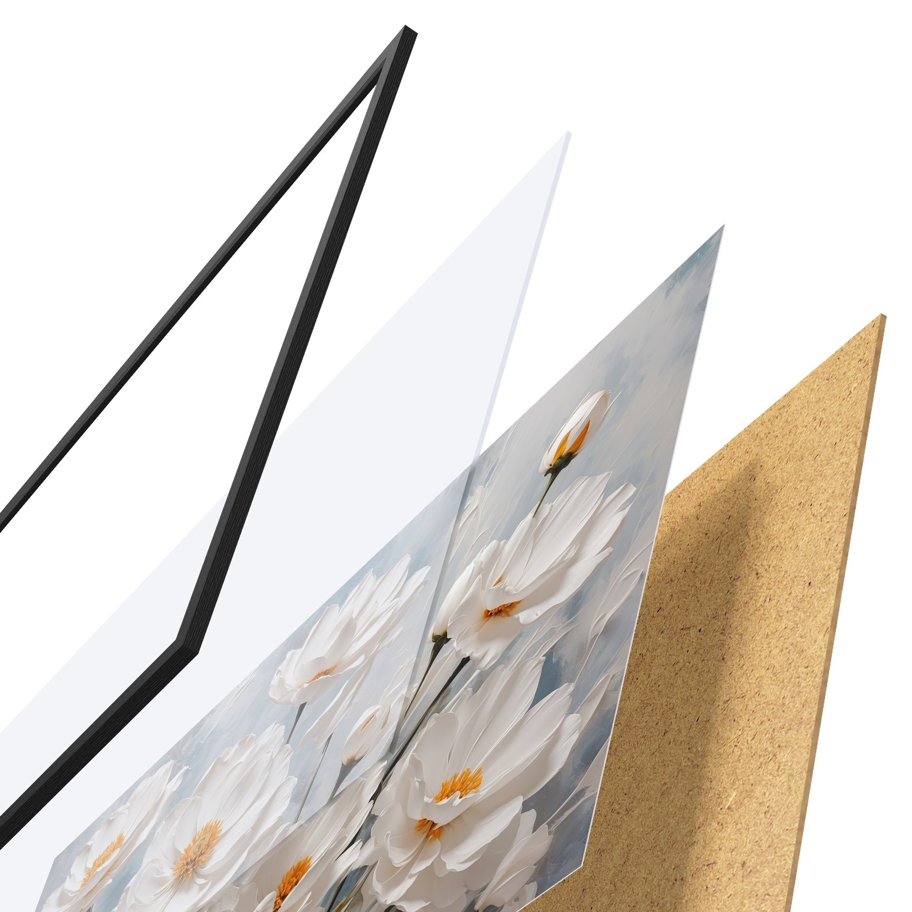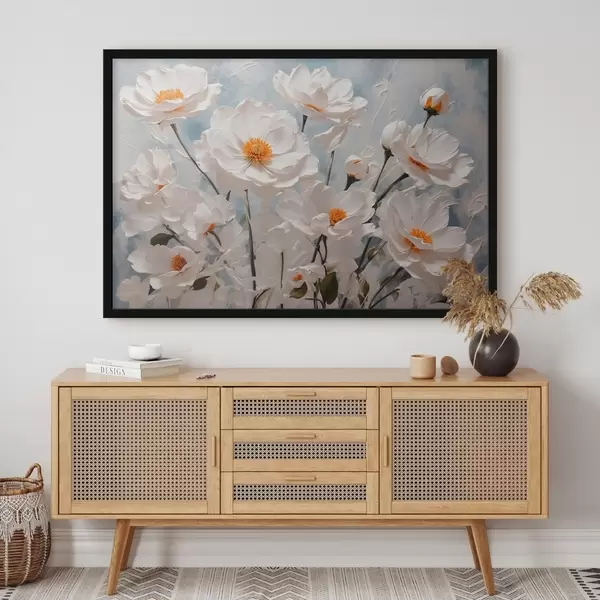 Plakatas Baltos gėlės mėlyname-baltame aliejiniame fone Ne f41041