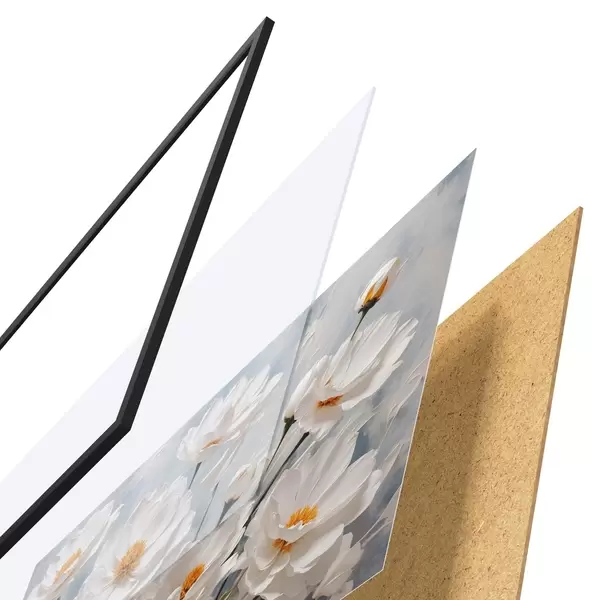 Plakatą sudaro rėmas, pleksiklas, atspausdintas vaizdas ir medžio drožlių plokštės pagrindas. Plakatą galima iš karto pakabinti ant sienos dėl kitoje pusėje esančių laikiklių.