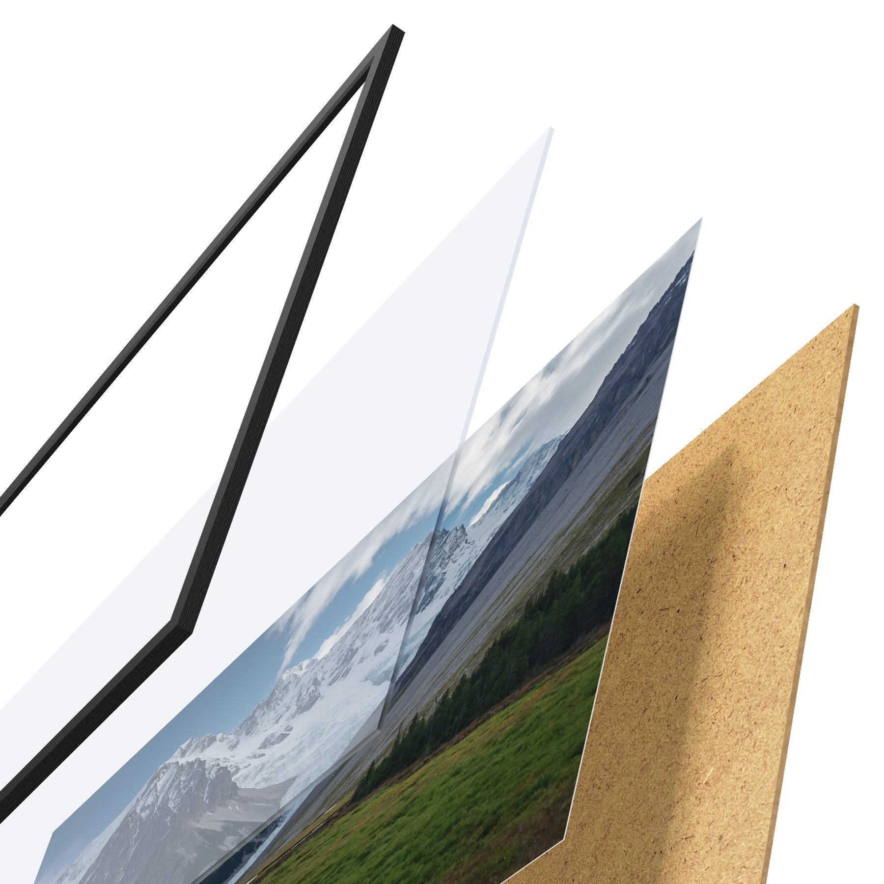Plakatą sudaro rėmas, pleksiklas, atspausdintas vaizdas ir medžio drožlių plokštės pagrindas. Plakatą galima iš karto pakabinti ant sienos dėl kitoje pusėje esančių laikiklių.