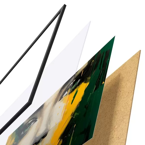 Plakatą sudaro rėmas, pleksiklas, atspausdintas vaizdas ir medžio drožlių plokštės pagrindas. Plakatą galima iš karto pakabinti ant sienos dėl kitoje pusėje esančių laikiklių.