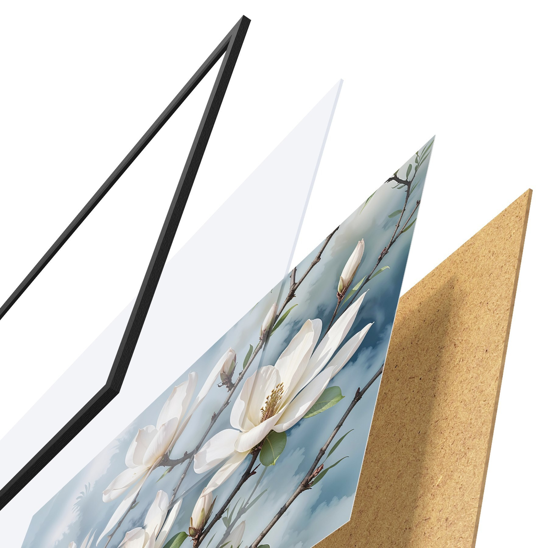 Plakatą sudaro rėmas, pleksiklas, atspausdintas vaizdas ir medžio drožlių plokštės pagrindas. Plakatą galima iš karto pakabinti ant sienos dėl kitoje pusėje esančių laikiklių.