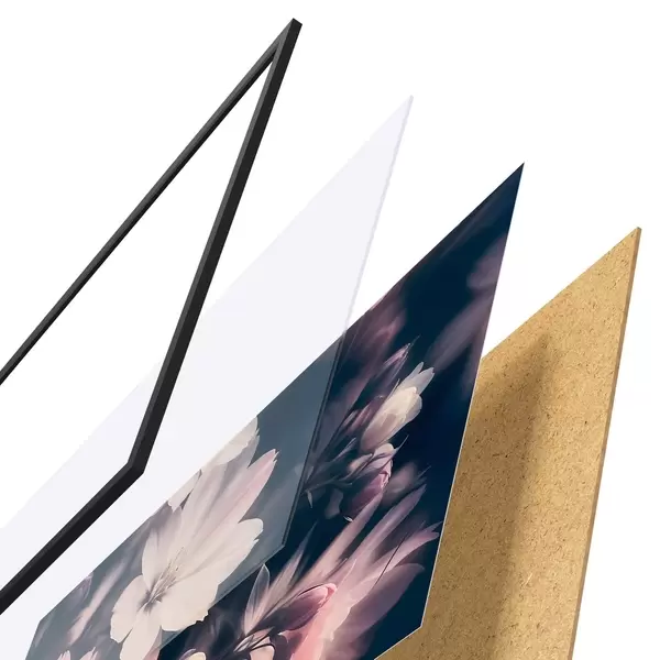 Plakatą sudaro rėmas, pleksiklas, atspausdintas vaizdas ir medžio drožlių plokštės pagrindas. Plakatą galima iš karto pakabinti ant sienos dėl kitoje pusėje esančių laikiklių.