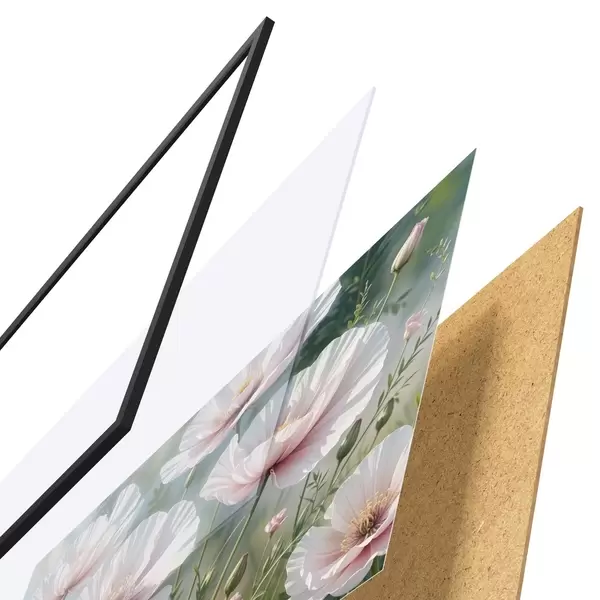 Plakatą sudaro rėmas, pleksiklas, atspausdintas vaizdas ir medžio drožlių plokštės pagrindas. Plakatą galima iš karto pakabinti ant sienos dėl kitoje pusėje esančių laikiklių.