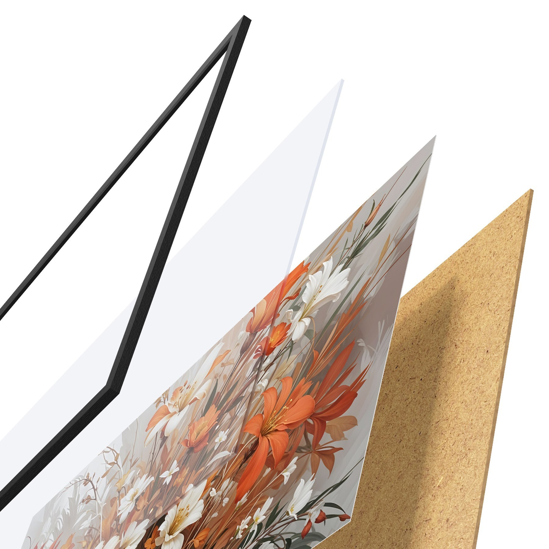 Plakatą sudaro rėmas, pleksiklas, atspausdintas vaizdas ir medžio drožlių plokštės pagrindas. Plakatą galima iš karto pakabinti ant sienos dėl kitoje pusėje esančių laikiklių.