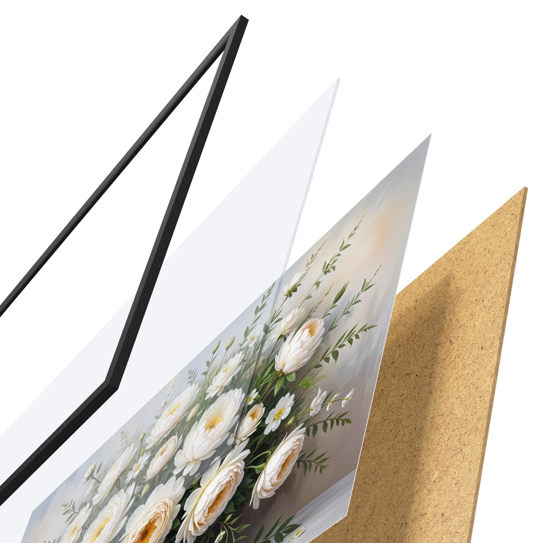 Plakatą sudaro rėmas, pleksiklas, atspausdintas vaizdas ir medžio drožlių plokštės pagrindas. Plakatą galima iš karto pakabinti ant sienos dėl kitoje pusėje esančių laikiklių.