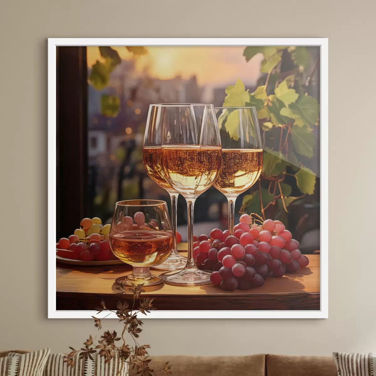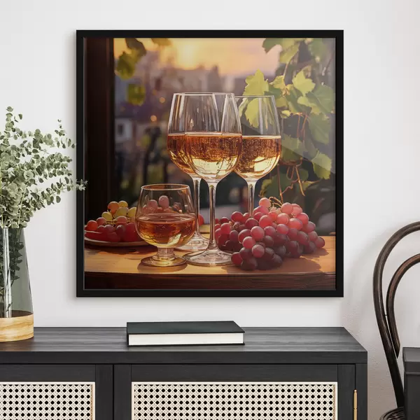 Plakatas taurės su vynu, vynuogės ant stalo, natiurmortas Ne f41104