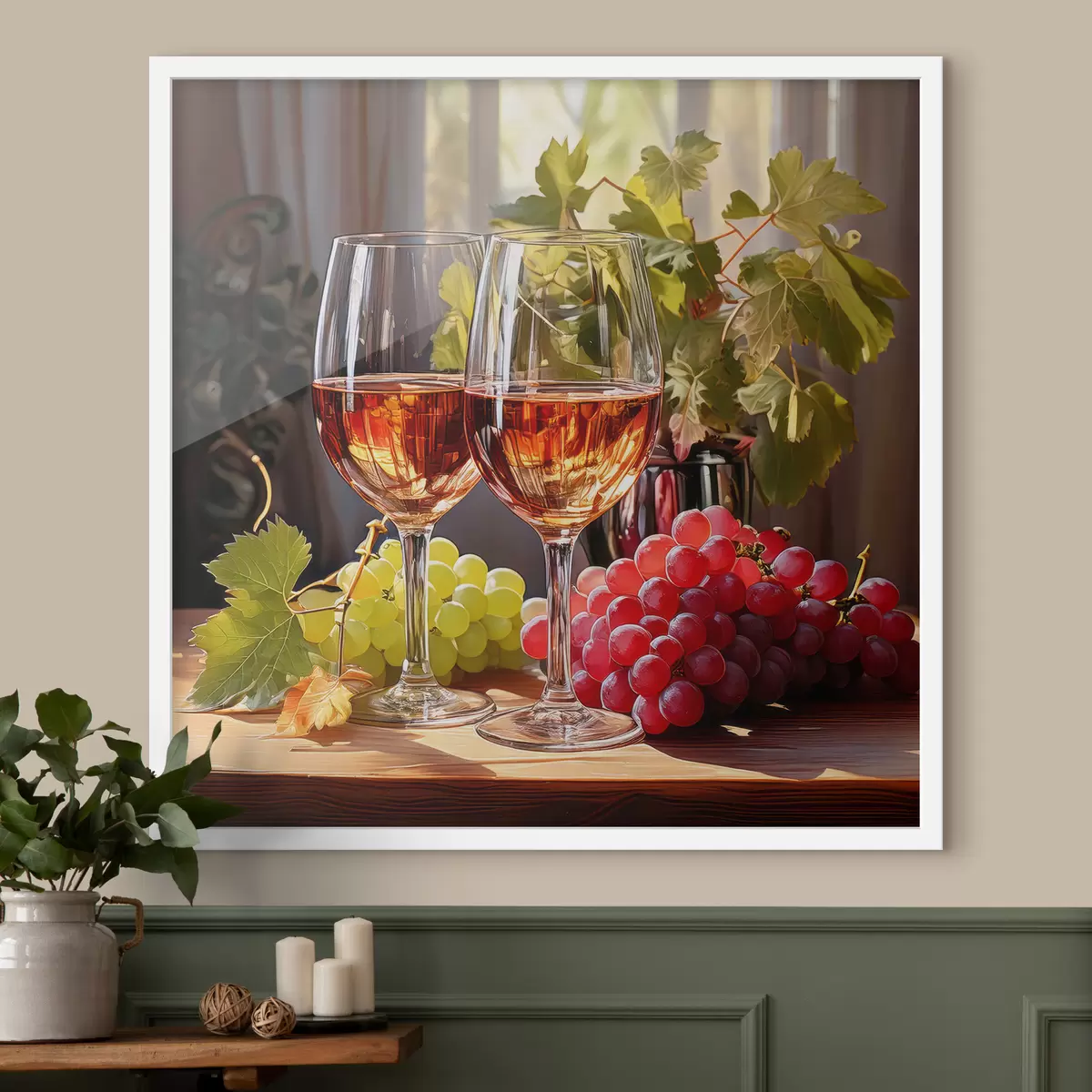 Plakatas vyno taurės ir vynuogės, natiurmortas f41105