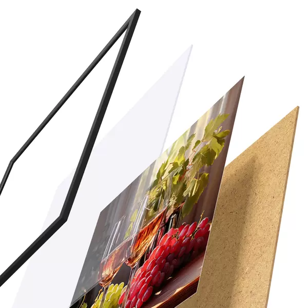 Plakatą sudaro rėmas, pleksiklas, atspausdintas vaizdas ir medžio drožlių plokštės pagrindas. Plakatą galima iš karto pakabinti ant sienos dėl kitoje pusėje esančių laikiklių.