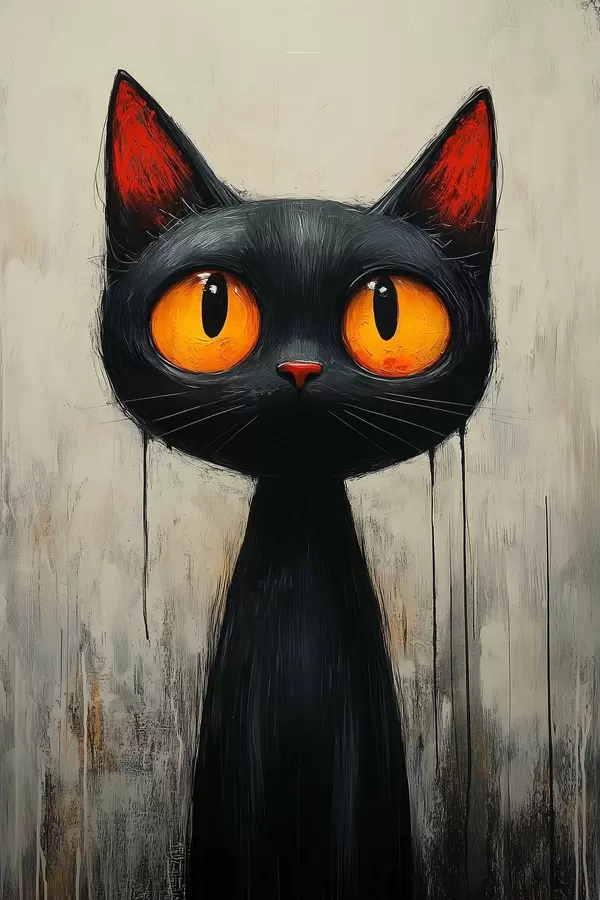 Plakatas Juoda akvarelė katė geltonomis akimis f41120