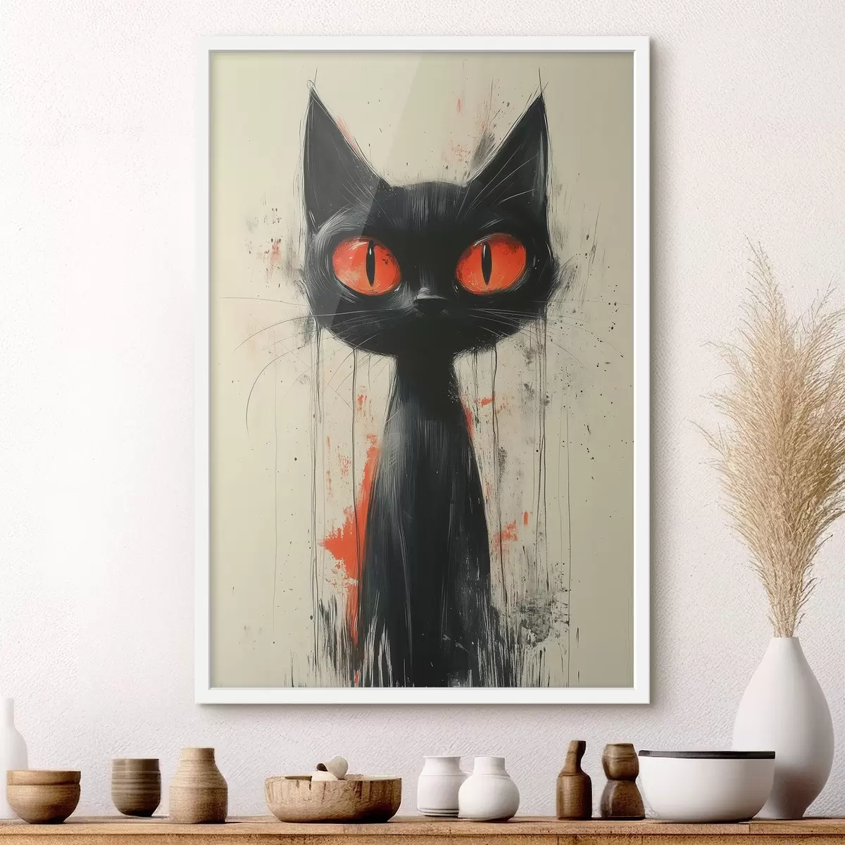 Plakatas Rankomis piešta juoda katė akvarelės dėmių fone f41121