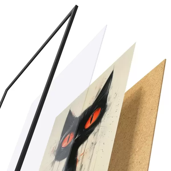 Plakatą sudaro rėmas, pleksiklas, atspausdintas vaizdas ir medžio drožlių plokštės pagrindas. Plakatą galima iš karto pakabinti ant sienos dėl kitoje pusėje esančių laikiklių.