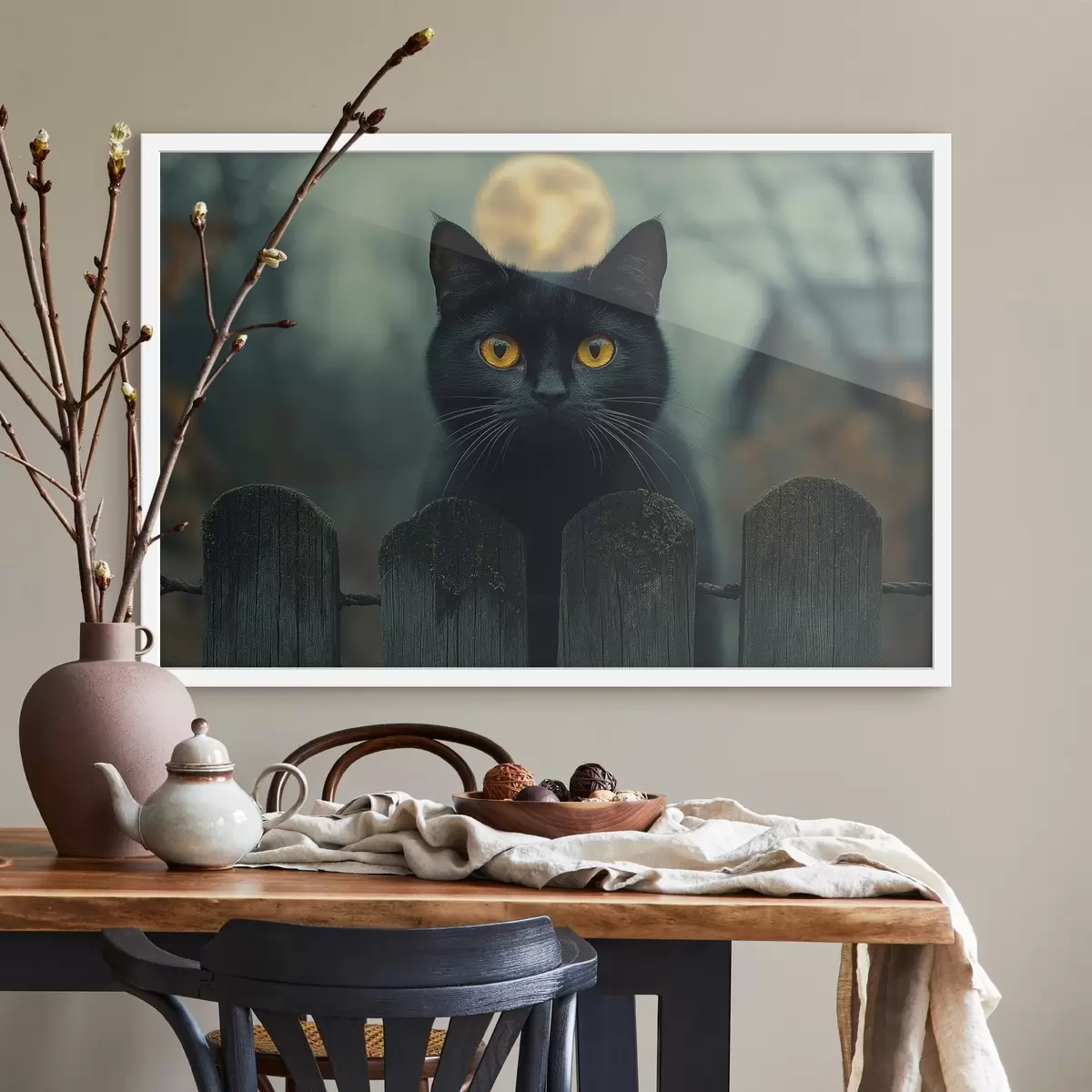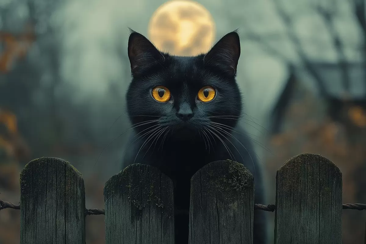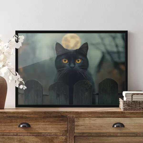 Plakatas Juoda katė ir mėnulio pilnatis fone f41123