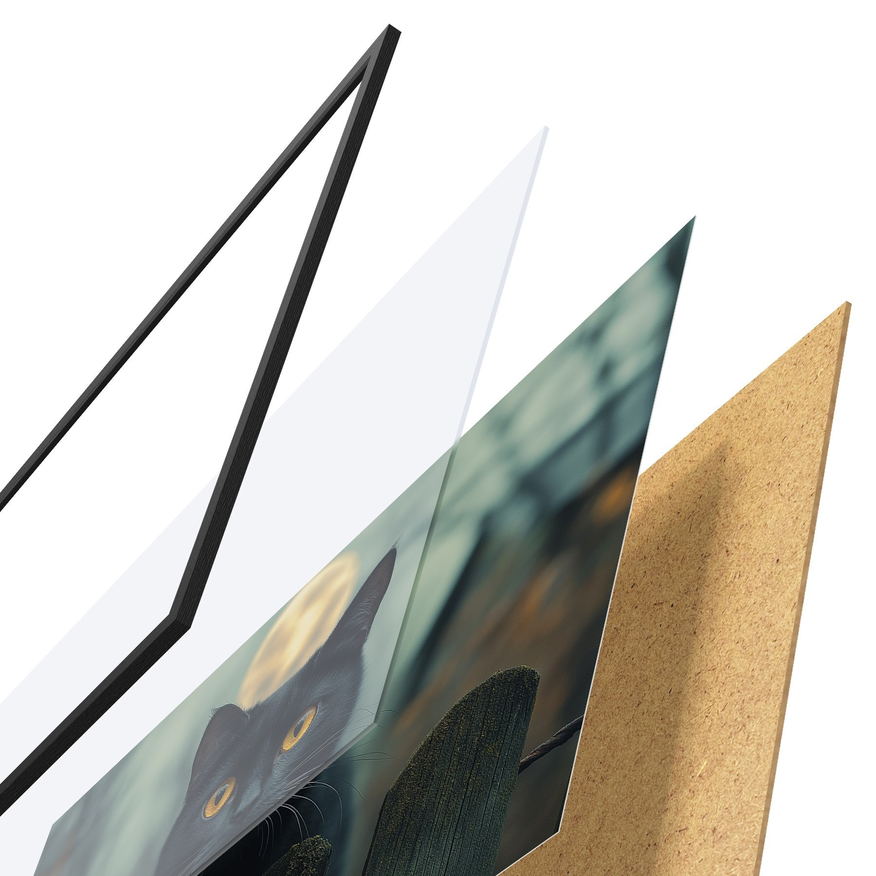 Plakatą sudaro rėmas, pleksiklas, atspausdintas vaizdas ir medžio drožlių plokštės pagrindas. Plakatą galima iš karto pakabinti ant sienos dėl kitoje pusėje esančių laikiklių.