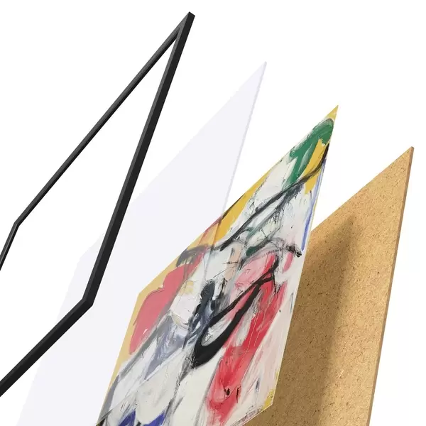 Plakatą sudaro rėmas, pleksiklas, atspausdintas vaizdas ir medžio drožlių plokštės pagrindas. Plakatą galima iš karto pakabinti ant sienos dėl kitoje pusėje esančių laikiklių.