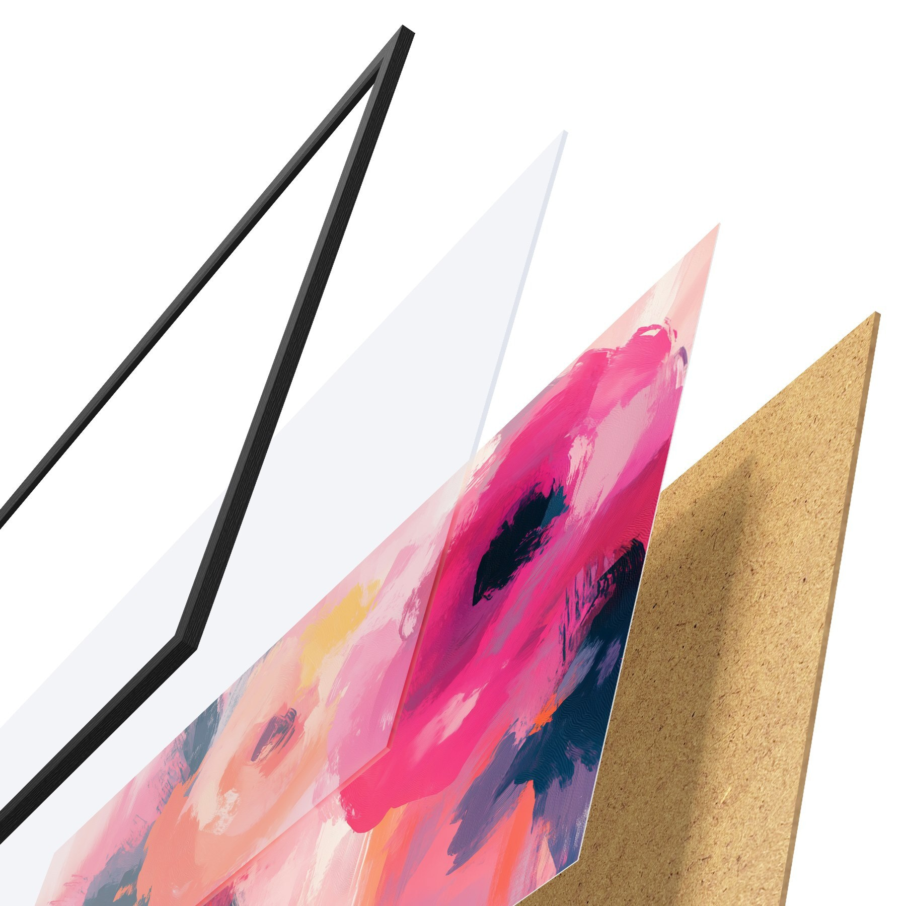 Plakatą sudaro rėmas, pleksiklas, atspausdintas vaizdas ir medžio drožlių plokštės pagrindas. Plakatą galima iš karto pakabinti ant sienos dėl kitoje pusėje esančių laikiklių.