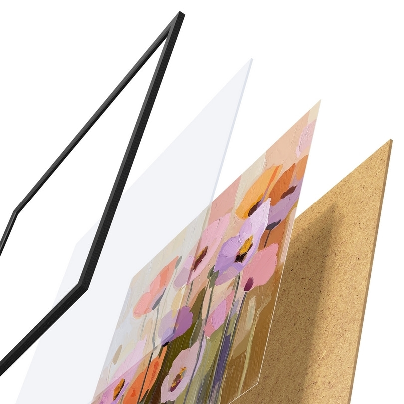Plakatą sudaro rėmas, pleksiklas, atspausdintas vaizdas ir medžio drožlių plokštės pagrindas. Plakatą galima iš karto pakabinti ant sienos dėl kitoje pusėje esančių laikiklių.