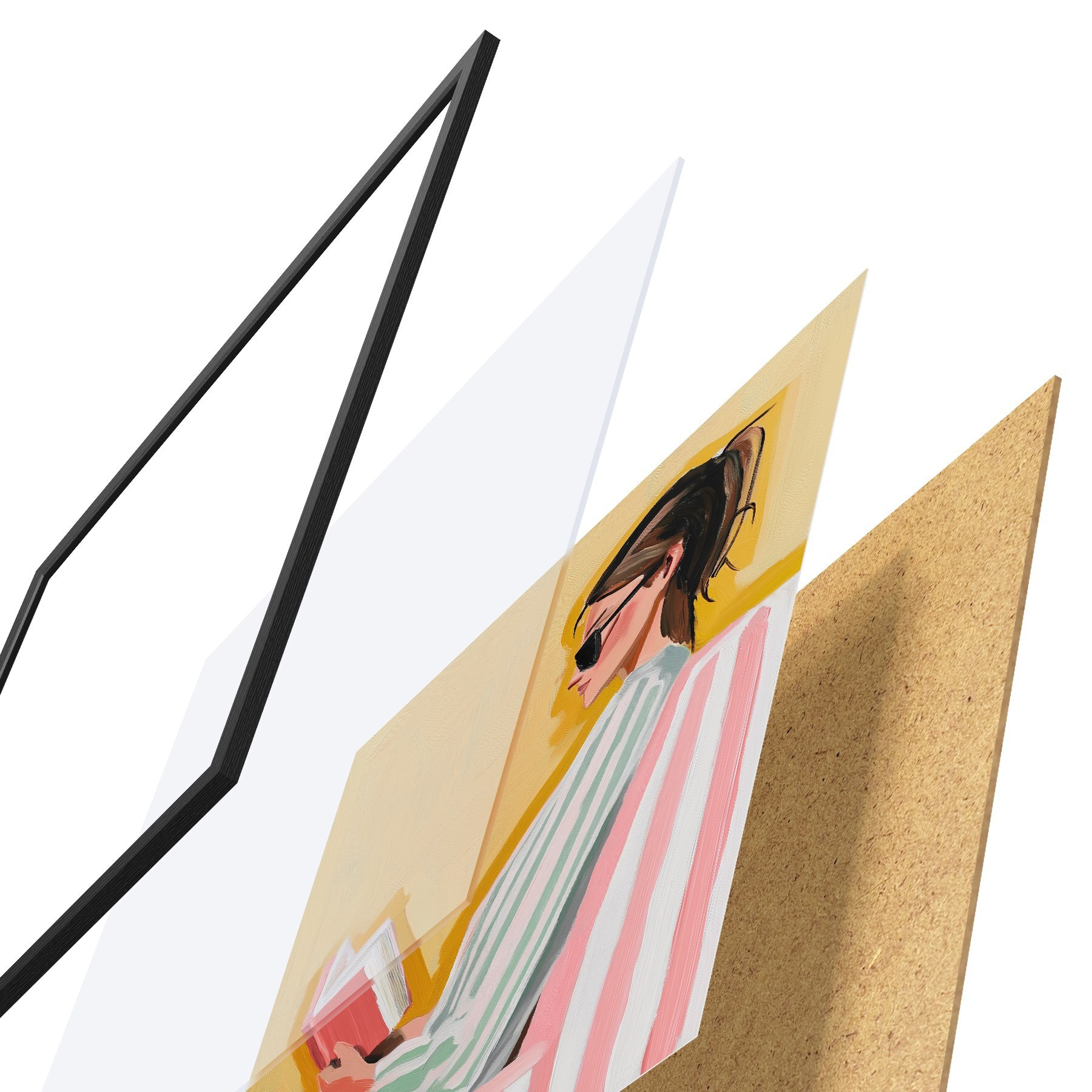 Plakatą sudaro rėmas, pleksiklas, atspausdintas vaizdas ir medžio drožlių plokštės pagrindas. Plakatą galima iš karto pakabinti ant sienos dėl kitoje pusėje esančių laikiklių.