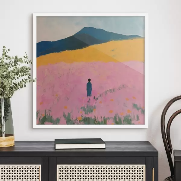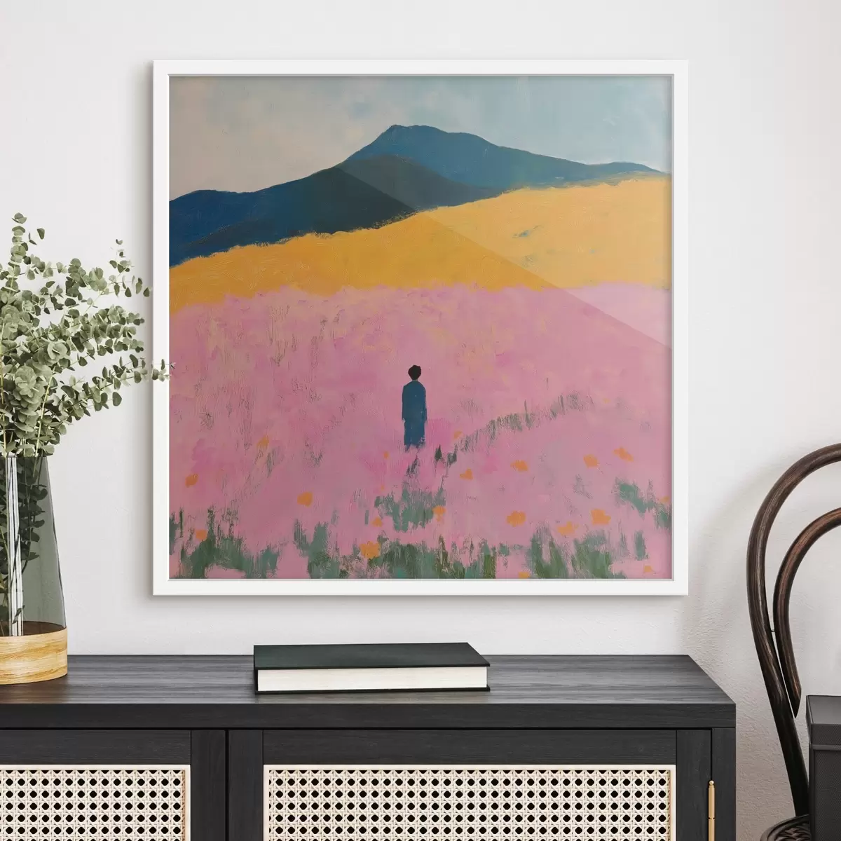 Plakatas Vyras lauke su rožinėmis gėlėmis Ne f41164