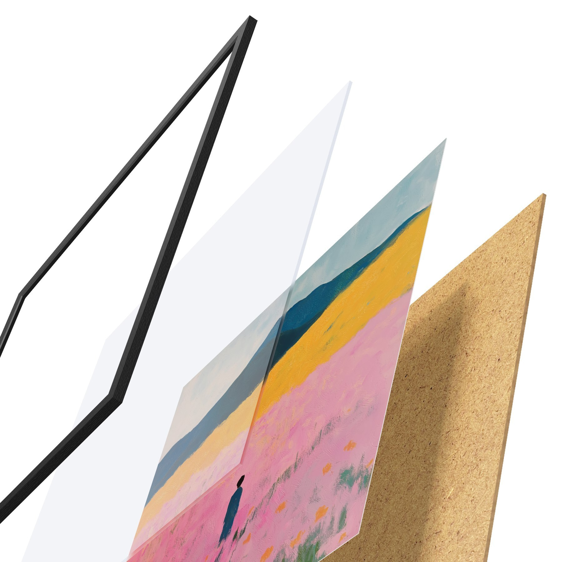 Plakatą sudaro rėmas, pleksiklas, atspausdintas vaizdas ir medžio drožlių plokštės pagrindas. Plakatą galima iš karto pakabinti ant sienos dėl kitoje pusėje esančių laikiklių.