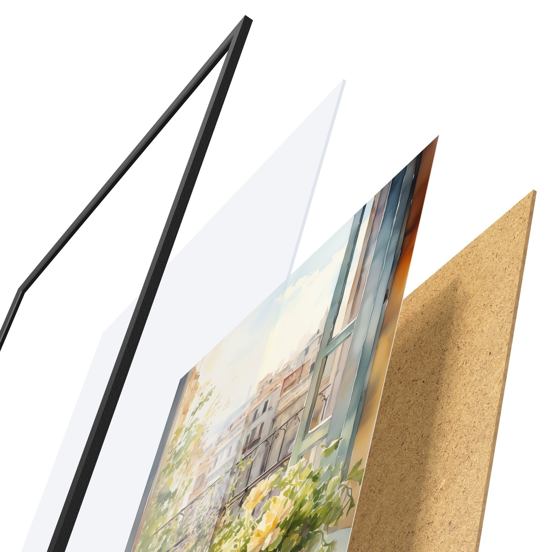 Plakatą sudaro rėmas, pleksiklas, atspausdintas vaizdas ir medžio drožlių plokštės pagrindas. Plakatą galima iš karto pakabinti ant sienos dėl kitoje pusėje esančių laikiklių.