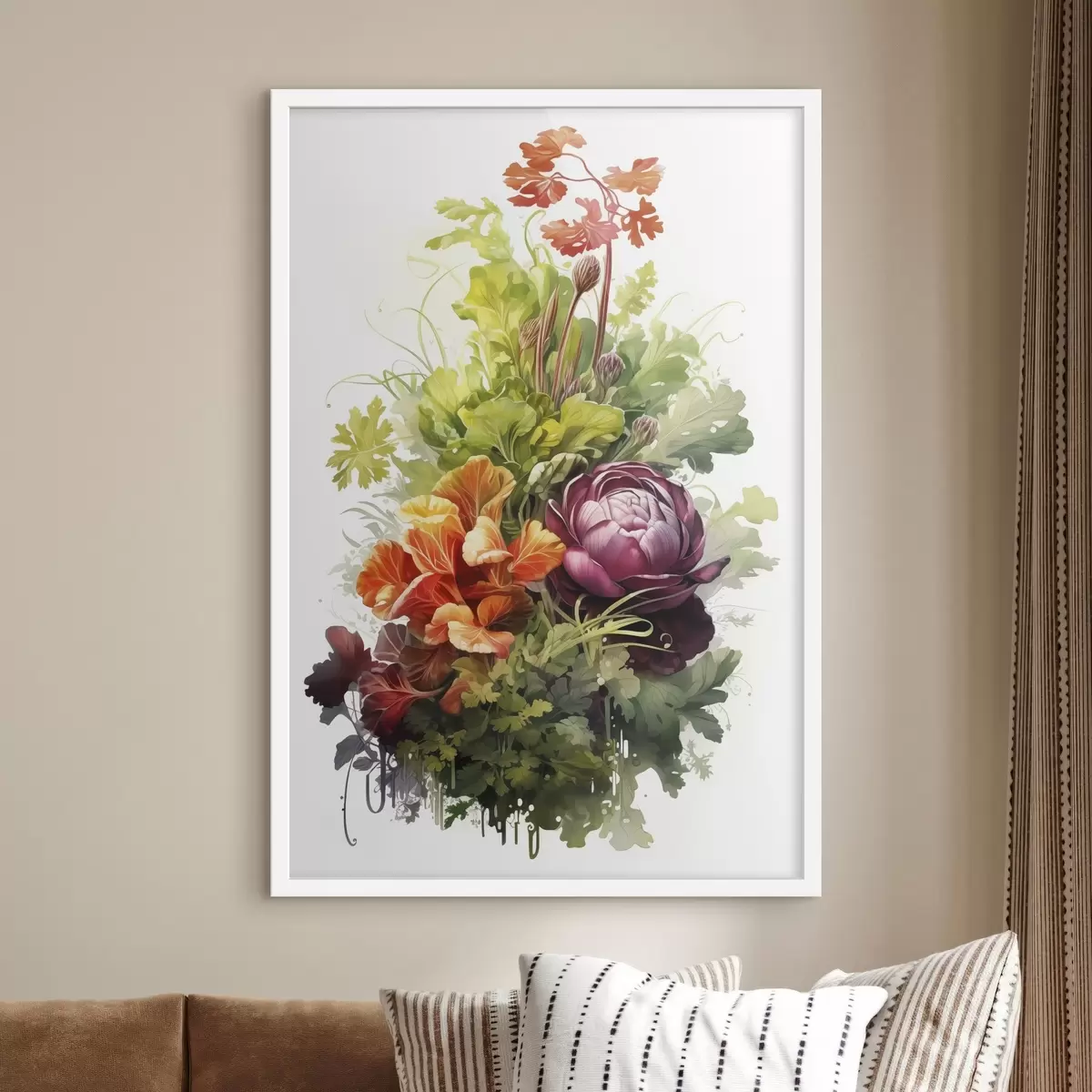 Plakatas Daržovių derlius, akvarelė, žaluma, gėlės Ne f41173