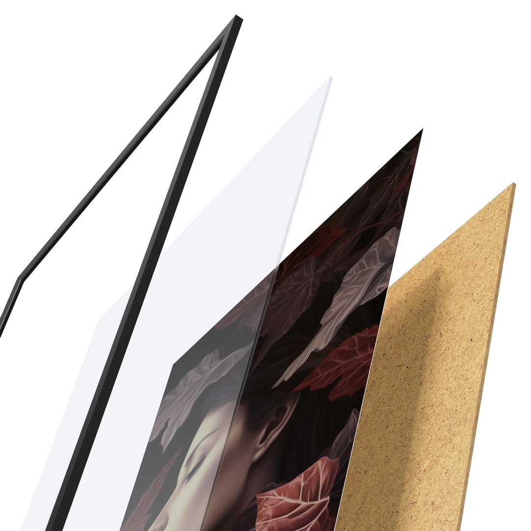 Plakatą sudaro rėmas, pleksiklas, atspausdintas vaizdas ir medžio drožlių plokštės pagrindas. Plakatą galima iš karto pakabinti ant sienos dėl kitoje pusėje esančių laikiklių.
