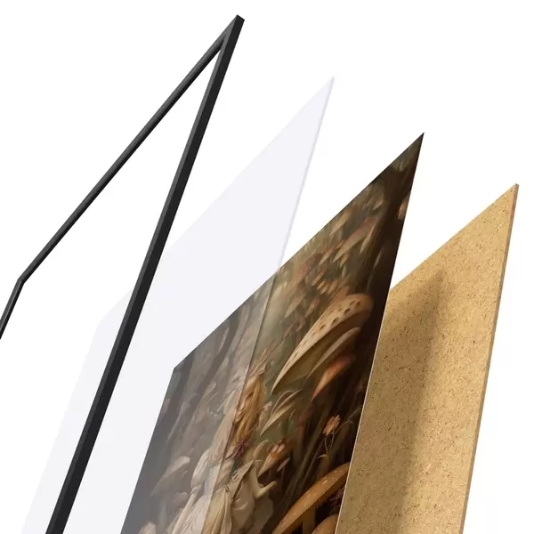 Plakatą sudaro rėmas, pleksiklas, atspausdintas vaizdas ir medžio drožlių plokštės pagrindas. Plakatą galima iš karto pakabinti ant sienos dėl kitoje pusėje esančių laikiklių.