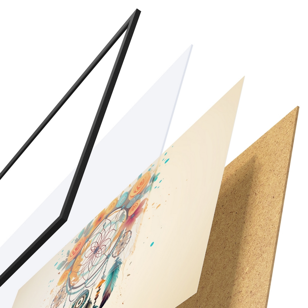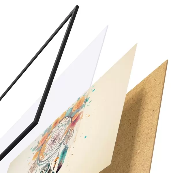 Plakatą sudaro rėmas, pleksiklas, atspausdintas vaizdas ir medžio drožlių plokštės pagrindas. Plakatą galima iš karto pakabinti ant sienos dėl kitoje pusėje esančių laikiklių.