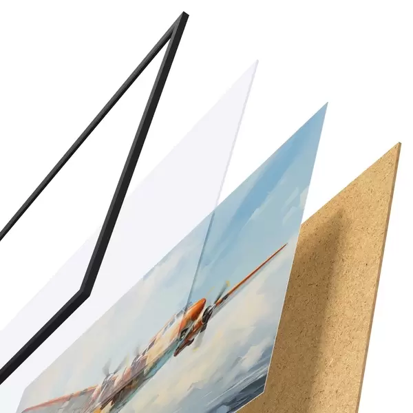 Plakatą sudaro rėmas, pleksiklas, atspausdintas vaizdas ir medžio drožlių plokštės pagrindas. Plakatą galima iš karto pakabinti ant sienos dėl kitoje pusėje esančių laikiklių.