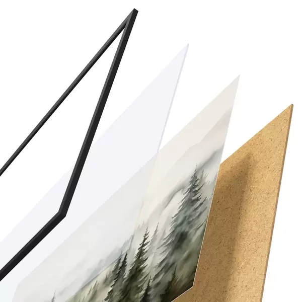 Plakatą sudaro rėmas, pleksiklas, atspausdintas vaizdas ir medžio drožlių plokštės pagrindas. Plakatą galima iš karto pakabinti ant sienos dėl kitoje pusėje esančių laikiklių.
