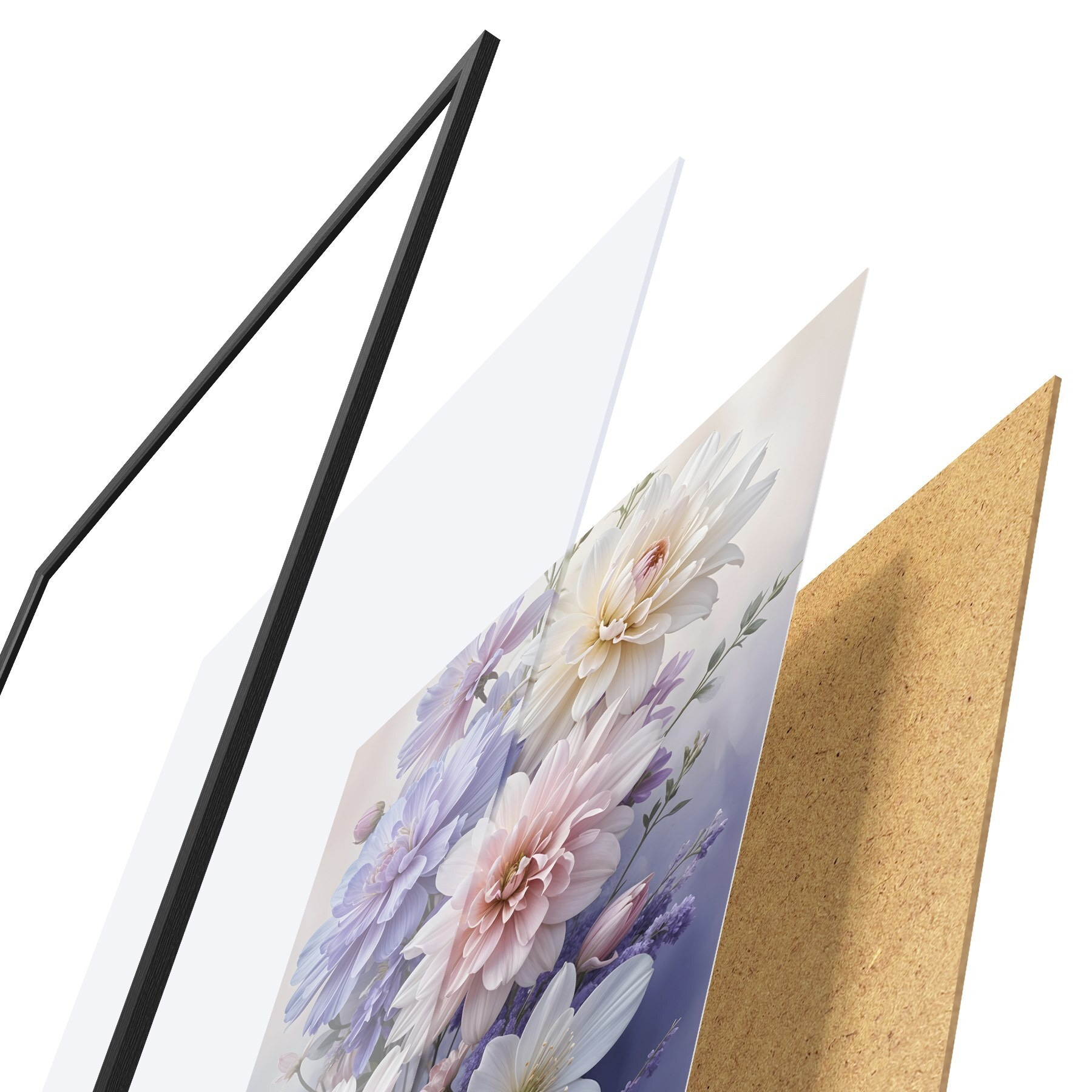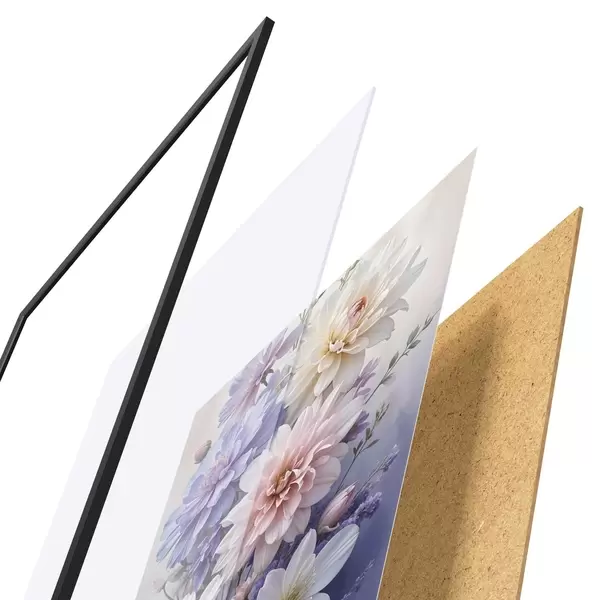 Plakatą sudaro rėmas, pleksiklas, atspausdintas vaizdas ir medžio drožlių plokštės pagrindas. Plakatą galima iš karto pakabinti ant sienos dėl kitoje pusėje esančių laikiklių.