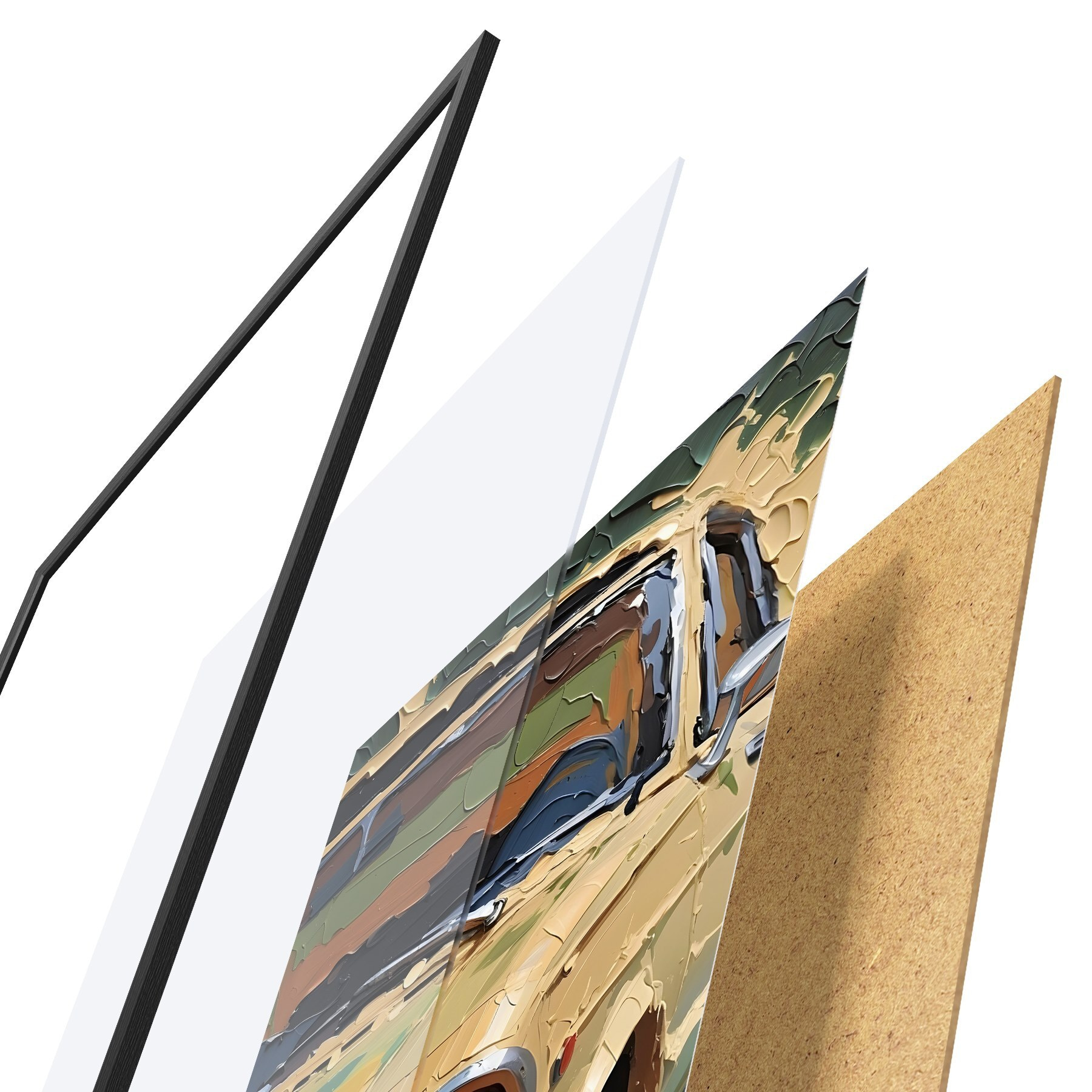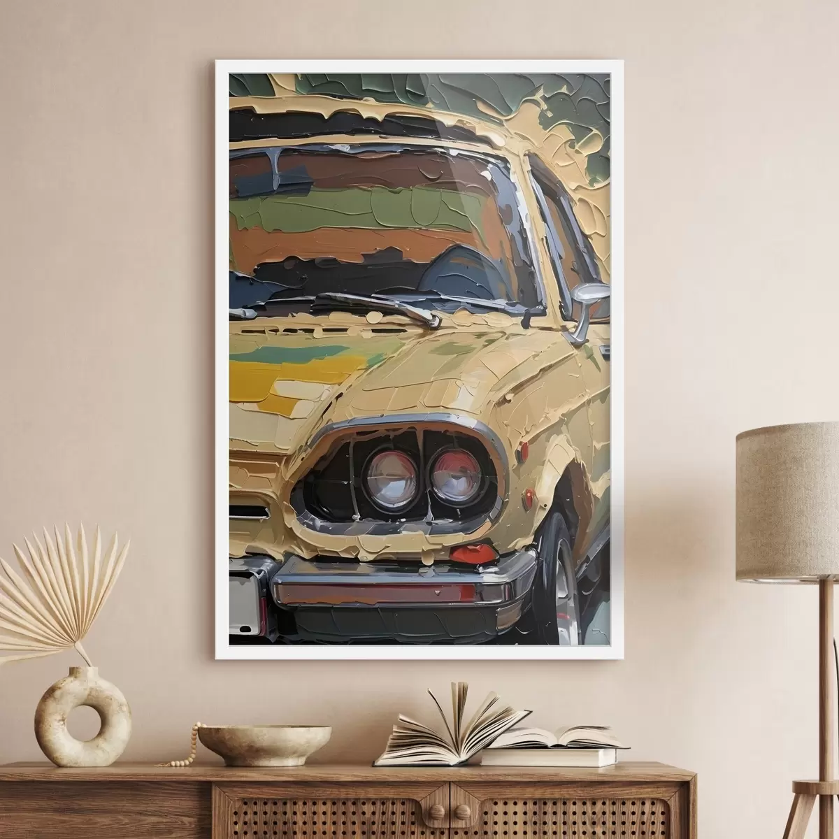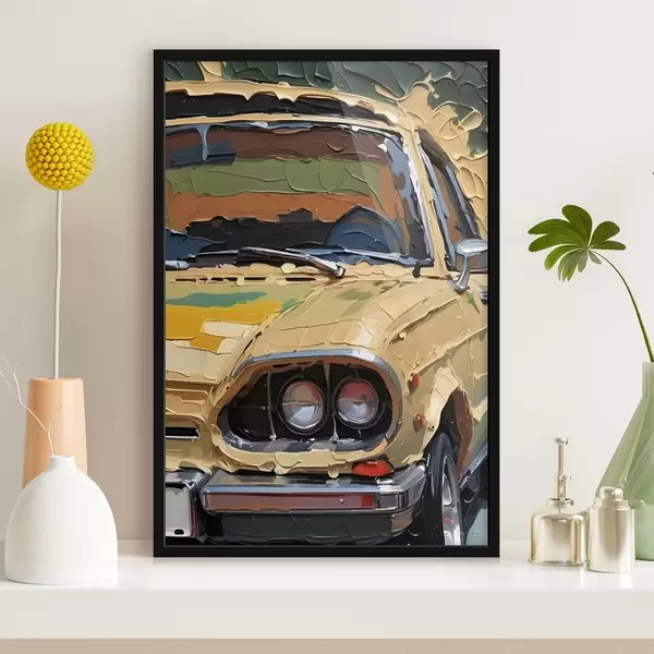 Plakatas Imitacija impasto aliejinės tapybos geltono automobilio spalvingame, abstrakčiame fone Ne f41261